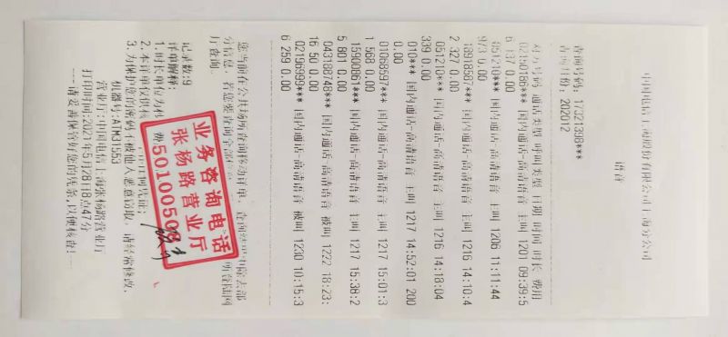下面这张详单图片,是我们公司同事在上海浦东最大的电信营业厅,张杨路电信营业厅,找客户经理,顾青经理给我们打印的2020年12月17日的通话详单; 上海电信公司张杨路电信营业厅的咨询电话是021--5010 0508; 这张详单图片,记录了2020年12月1日至2020年12月30日的9条通话记录; 我们的打印时间是2021年5月28日8点47分。